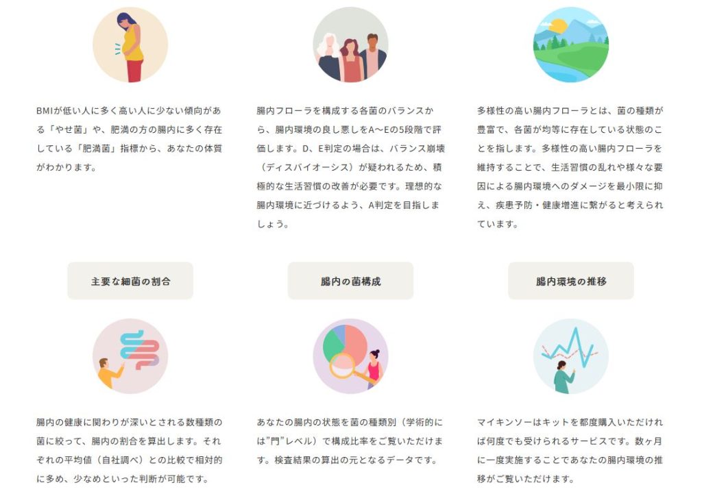 継続管理ならマイキンソー、疾患リスク評価ならフローラスキャンです。
